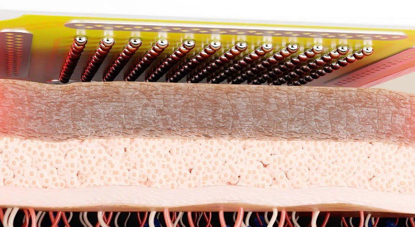 DermaFirme El único dispositivo que cuenta con electrodos elevados en 3D, igual que los tratamientosde clínica de primer nivel, los electrodos 3D mejoran el contacto cutáneo y la penetración multidireccional para resultados más rápidos y visibles, manteniendo la comodidad.