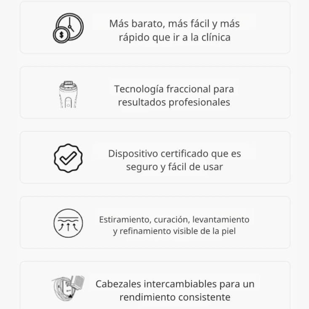Las celebridades pagan miles por la misma tecnología RF fraccionada. Con el Reafirmante DermaFirme, lo posees de por vida tratamientos ilimitados, total comodidad y resultados reales en casa.