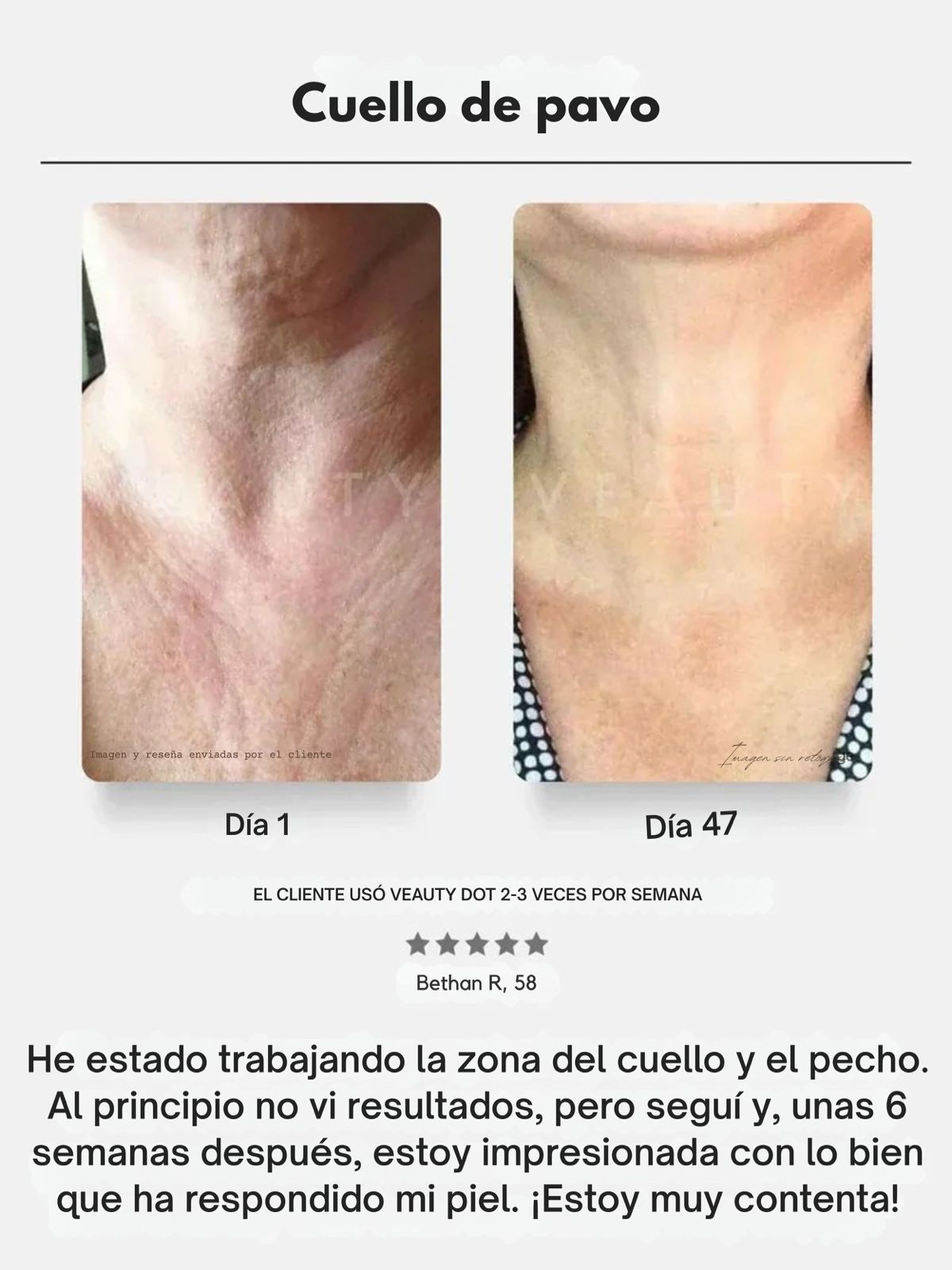 La mayoría de los usuarios nota una piel más firme y luminosa entre las 2 y 4 semanas de uso constante. Los resultados pueden variar según el tipo de piel y la frecuencia del tratamiento.